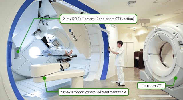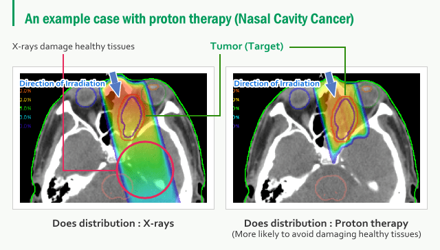 Proton beam has a unique characteristic called the “Bragg peak”, which enables emission of the highest radiation dose at the set depth. Thus, we are able to control the proton beam to deposit a large focused amount of radiation right into a tumour. In proton therapy, the shape and depth of the ‘Bragg peak’ are precisely controlled to conform to the shape and size of a tumour, which enables radiation oncologists to provide a focused treatment on the targeted area.