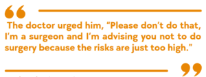 However, the urologist was unexpectedly opposed to this turn of events. When Gordon expressed his desire to undergo the surgery, the urologist strongly discouraged him from doing so. The doctor urged him, “Please don’t do that, I’m a surgeon and I’m advising you not to do surgery because the risks are just too high.” The urologist even called the oncologist from the examination room, and explicitly told the latter that he