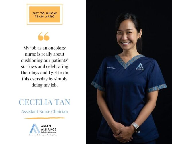 An oncology nurse is a nursing professional who specialises in caring for people with cancer. Oncology nurses often serve as the first line of patient’s communication and help coordinate many aspects of cancer care. They assist the radiation oncologist in ensuring appropriate and accurate presentation of medical records, assessing and monitoring patient’s physical and emotional status, and collaborating with allied healthcare professional in providing a holistic care plan for patients.
