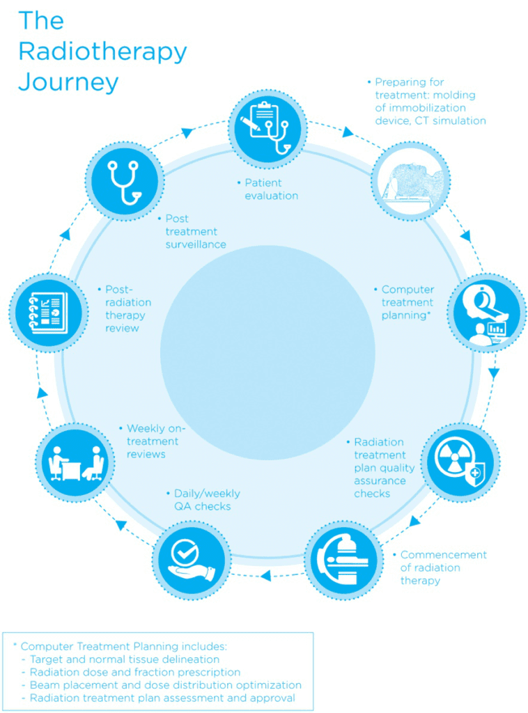 A combination of such beams of varying intensity allows a highly sculpted three dimensional distribution of radiation, maximizing dose to the tumour while reducing or even avoiding healthy tissues. Advanced computer planning helps to find the best combination of beams to achieve the desired results.